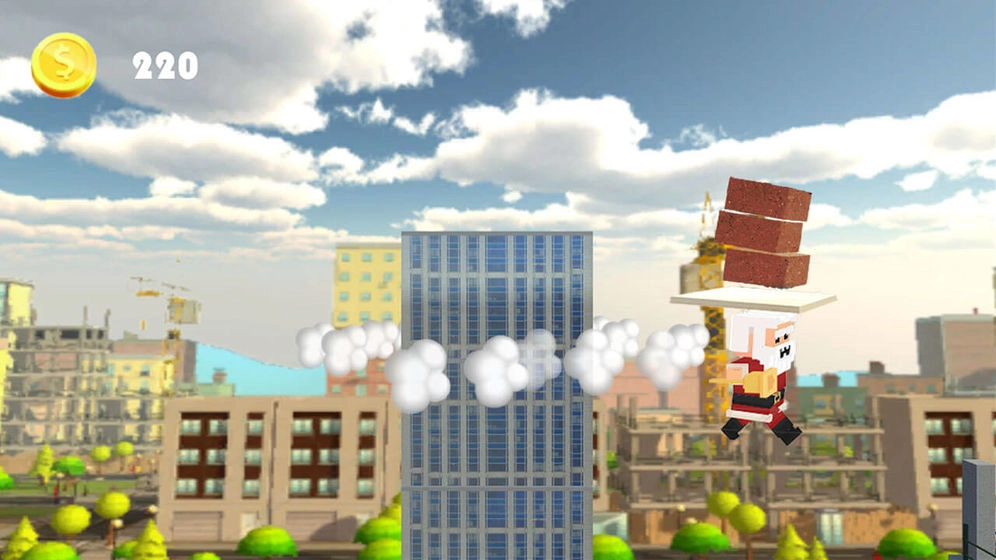 2、左侧跳跃,右侧行走,合理搭配走与跳的动作,确保在倒计时3秒结束前砖块不会掉落,这样就能成功增加楼层数。