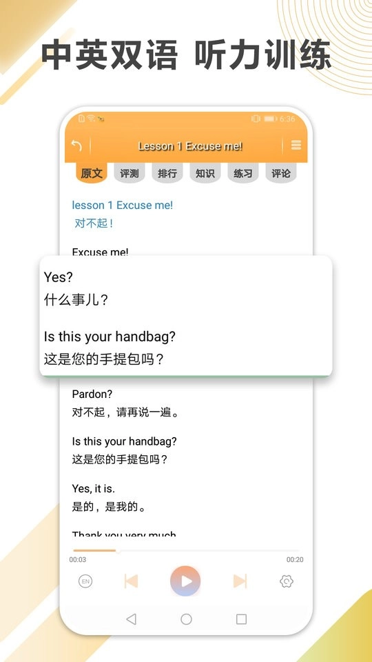 2、发音一键切换:播放界面支持英美音随时切换,听力训练更具灵活性。