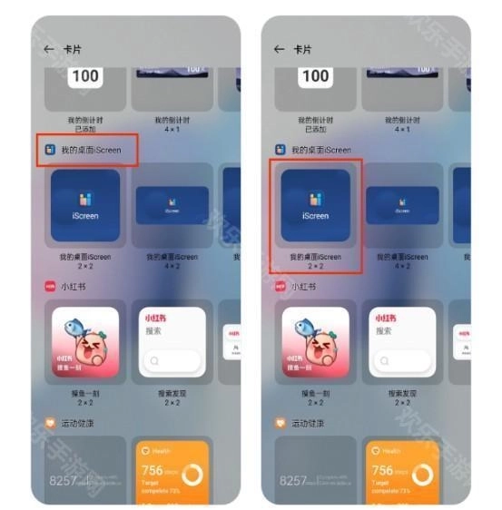 2、在列表里找到“我的桌面iScreen”,挑选小组件的尺寸,接着点击或者拖动该小组件到手机桌面即可。