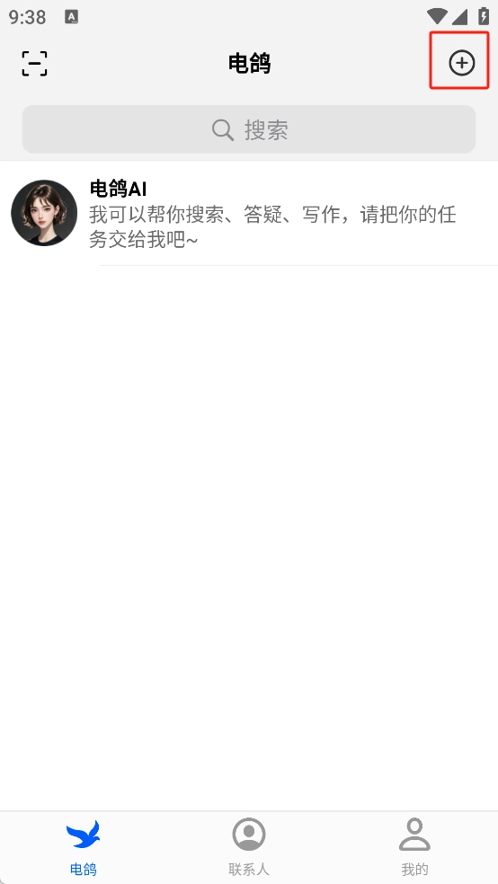 1.打开电鸽后登录账号点击右上角的“+”