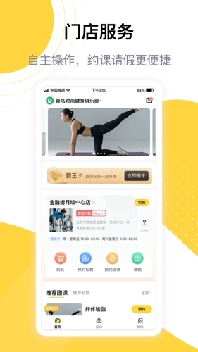 线上购买、课程预约、自助请假,健身一步到位