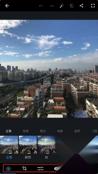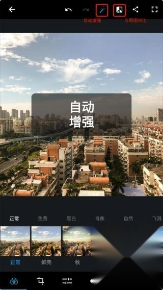 这里不采用自动增强功能,而是直接通过底部的工具栏来进行图片修饰。
