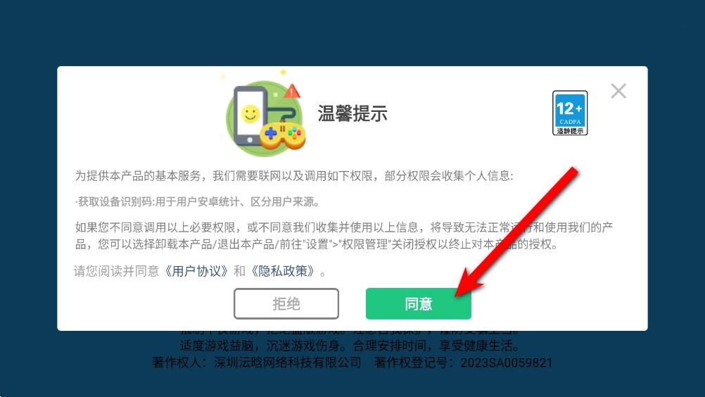 1、打开马桶人宇宙大战之后,点击同意并继续。