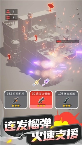 2、玩家将运用威力强劲的武器持续击败接踵而至的强大敌人,战斗时采用抛物线弹道的方式展开