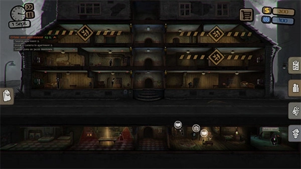 《旁观者》是一款十分经典的冒险解谜类手机游戏。游戏运用暗黑风格来烘托紧张刺激的游戏氛围,玩家在游戏里将扮演Carl,他需要监视自己的房客,对他们进行窃听,还得安装窃听设备和摄影机,为每个房客建立专属档案,要是发现有人密谋反对State,就必须马上上报。