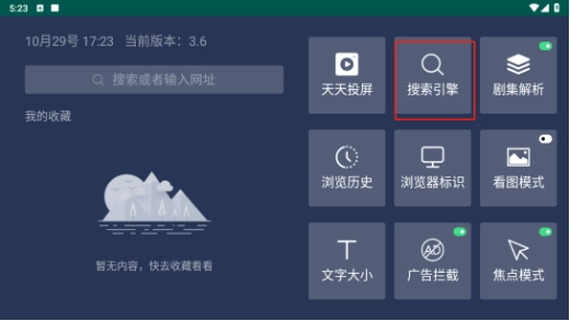 2. 在应用的主界面点击“搜索引擎”选项。