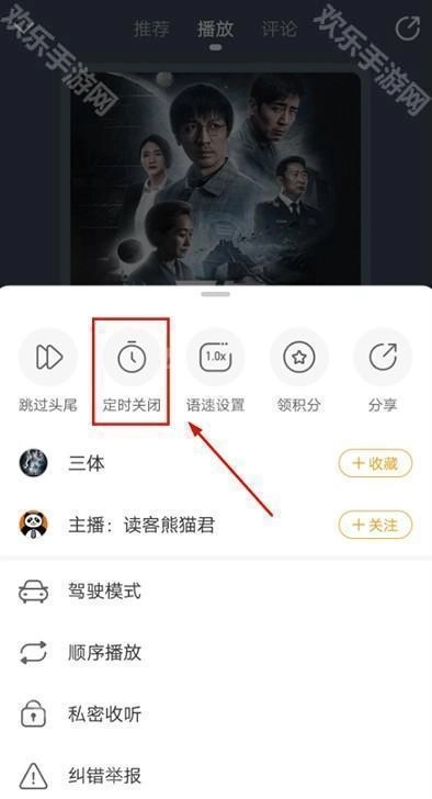 3、进入设置栏后选择【定时】选项,接着可根据需求设置定时停止播放的时间,或是设定播放到某一集后自动停止。