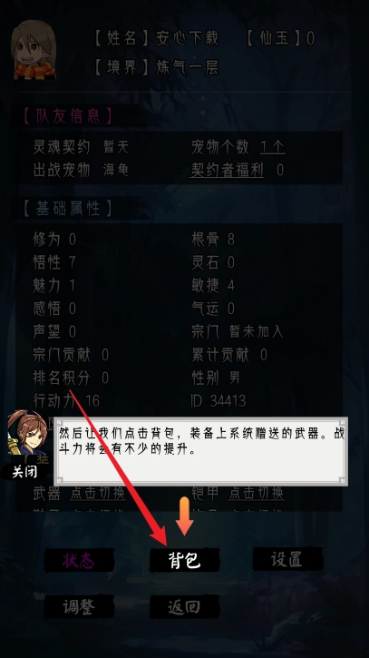 4、查看背包可以装备上各种武器,战斗力就会有提升