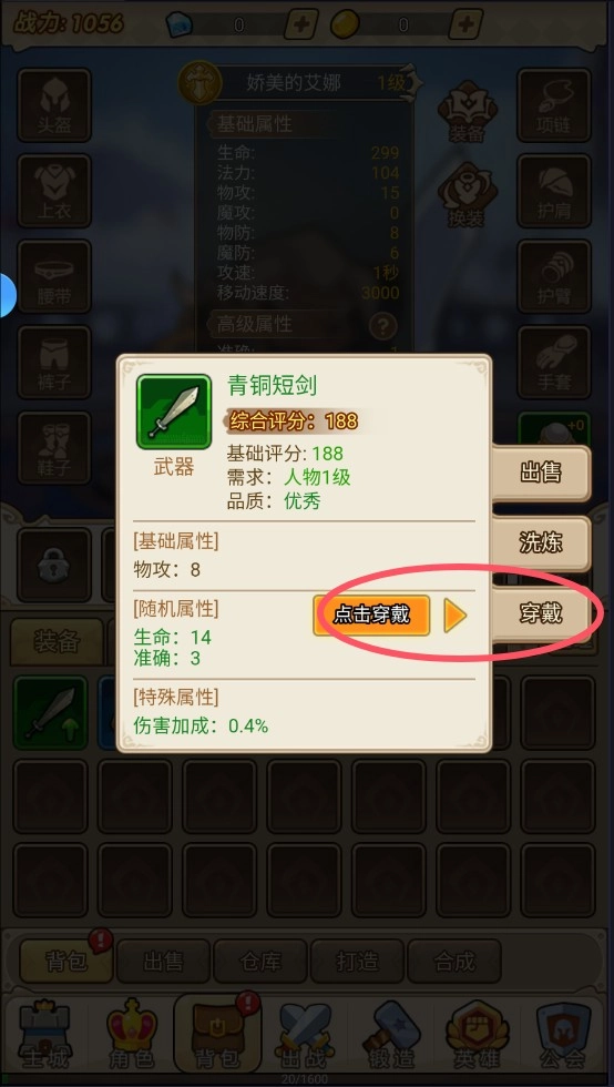 6、穿上装备,提升属性,正式开始战斗冒险。