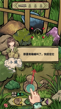 2、捕捉蛐蛐:拖动下方绿色竹篓捕捉蛐蛐进行训练。