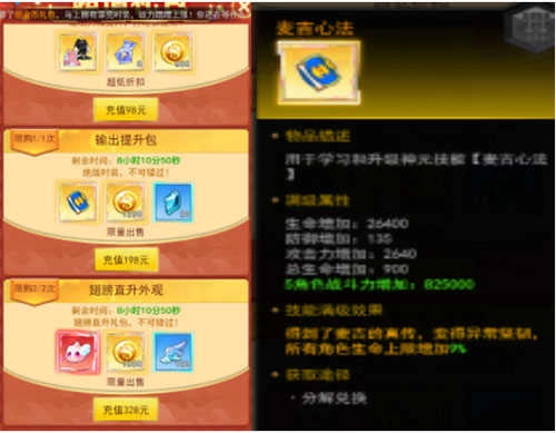 boss排行榜第一名能获得圣主装备封神水晶,还有超酷炫的称号,所以在产出星辰羽的同时,我觉得这个活动是最良心的。6、另外,后期的榜单要是想更容易上榜,超值礼包里的物品肯定得买,对战力提升很有帮助,里面的时装也是限时的,之后不会再产出。麦吉心法是能和天行力量相提并论的道具,只不过前者侧重攻击,后者侧重防御,9%的生命上限是在原有生命基础上增加9%的额外生命值,这样更能扛住伤害。后面的直升包子加上120个星辰羽也能快速提升翅膀等级,而且会返还1888金币,大概能节省2000金左右,非常划算。