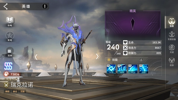 这里有一位战士英雄,她的魅力与美貌都极为出众,在战场上不仅能发起凌厉的攻势,自身也拥有着惊人的坚韧,足以抵挡大量攻击。她擅长运用巨型盾牌与利剑作战,并且掌握着能让自己恢复生命力的特殊能力。第三位英雄,我们称之为凛魂之刃——瑞克拉诺。