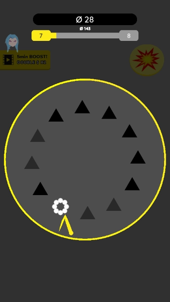 彩球弹射(OctoHits)是一款休闲有趣的碰撞消除类游戏,采用简洁的2D画面打造。玩家只需通过点击操作即可开启挑战:让一颗小球在圆环内弹射,借助碰撞实现消除;获得奖励后,还能解锁更多不同颜色的小球继续闯关。