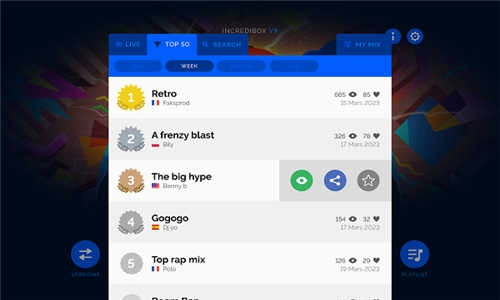 把你的创作录制下来,分享给全球的玩家们!要是能得到足够多的票数,你的混音作品就能登上IncrediboxTop50排行榜啦。