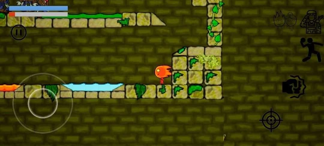当液体覆盖的区域太广,导致角色难以穿越时,可以尝试寻找机关或石块。让与该液体颜色相同的角色推动石块,在液体里铺出一条通路,这样就能让另一个冰火人顺利通过了。