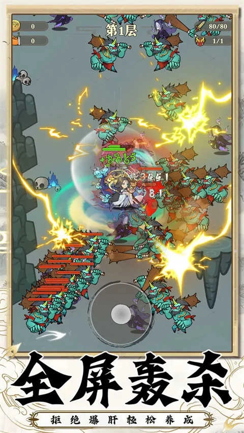 战斗操作方面,玩家负责控制角色的移动,角色会自行发起攻击。当敌人被击败后会掉落经验,玩家拾取这些经验就能让角色升级,升级过程中会随机出现武器、道具之类的选项供玩家挑选。