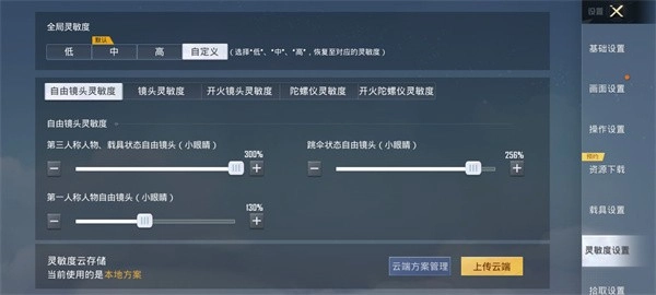 自由镜头灵敏度设置如下:第三人称角色及载具状态下的自由镜头(小眼睛)为120%;跳伞状态时的自由镜头(小眼睛)为120%;第一人称角色的自由镜头(小眼睛)则是100%。