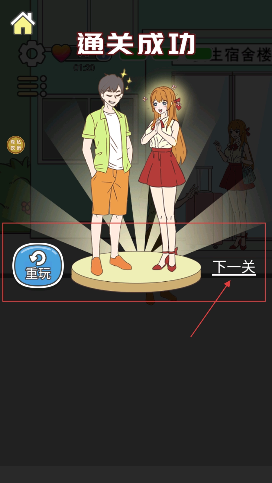 4、通关后点击【下一关】,继续解锁新剧情,体验后续游戏内容。