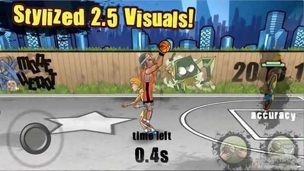 ◆别看这款游戏的操作只有传球、投球和方向摇杆这么简单,但单是传球和投球这两个功能就藏着不少门道——它们都支持一键多用:站在篮筐下时按投球键能完成灌篮,而且随着距离不同,灌篮的方式也会变化,真可谓花样百出、变化无穷!