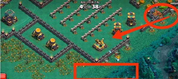 右侧红圈区域内有两名女武神,这两名女武神具备自动破墙的能力,破墙之后会前往攻击圣水罐。