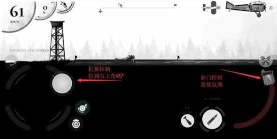 首先将左侧的机翼控制摇杆推至右上角位置,接着把右侧的油门按钮完全拉满,完成这两步操作后,飞机便会自行起飞。