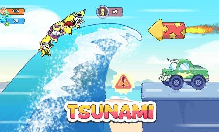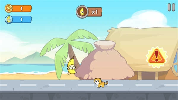 《香蕉猫生存大逃亡》(Banana Survival: Run Tsunami)是一款横版冒险闯关游戏,采用卡通风格的画面设计。玩家将在这里操控可爱的香蕉猫展开挑战,组建一支香蕉猫小队,共同应对形形色色的障碍物与陷阱,只要抵达目标地点即可完成关卡挑战。