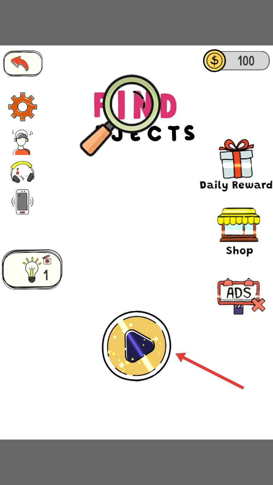 进入游戏界面后,点击位于屏幕中央、带有播放标识的金色按钮,即可开启寻找隐藏物品的挑战。