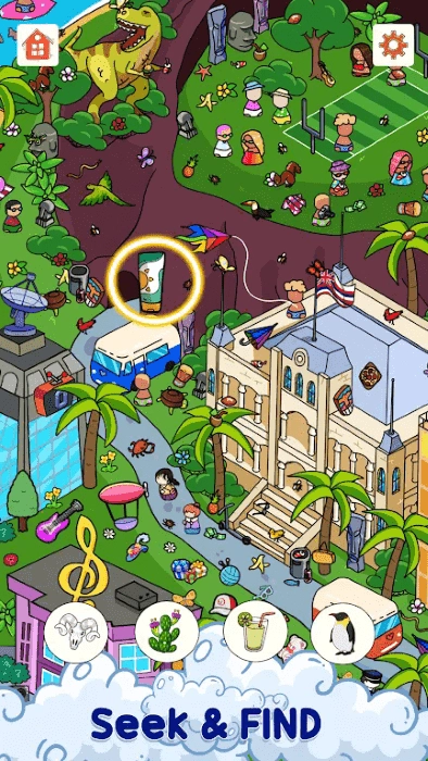 这是一款以卡通风格呈现的寻物解谜游戏,玩家需要在布局错落的场景里,依据提示完成各类探索任务。游戏操作直观易懂,适合作为休闲消遣的选择。玩家将置身于丰富多样的场景中,寻找被藏匿的物品,从热闹都市到静谧郊外,再到古老遗迹,在不同环境中穿梭,迎接各种趣味挑战。