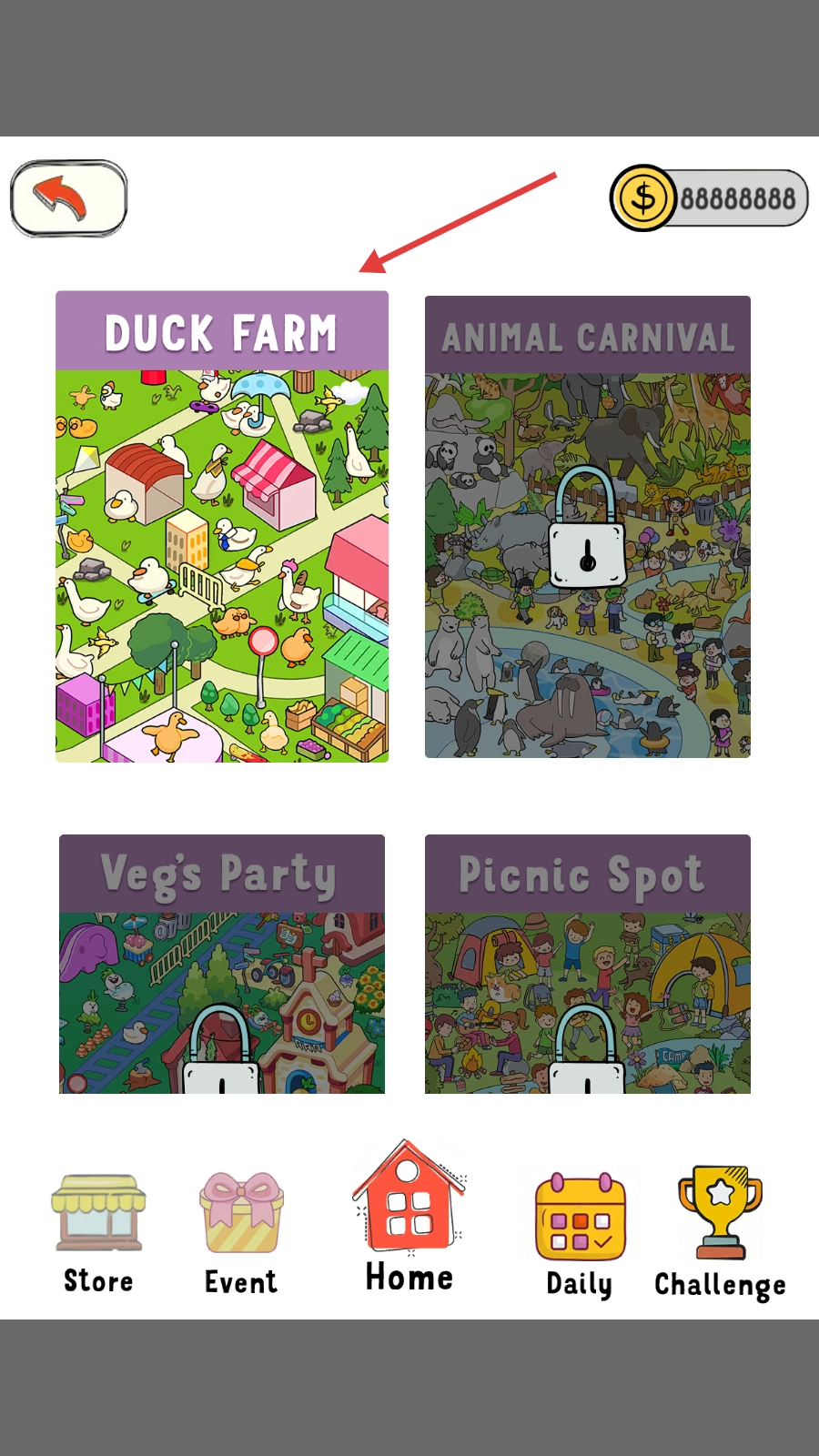 2、接着在场景选择界面,我们可以选择【DUCKFARM】场景,进入到鸭子农场的画面中。