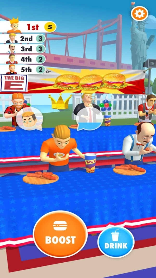 在大胃王模拟器游戏里,你可以体验一口气吃到撑的感觉,要努力让自己操控的角色吃下更多食物才能赢得胜利。
