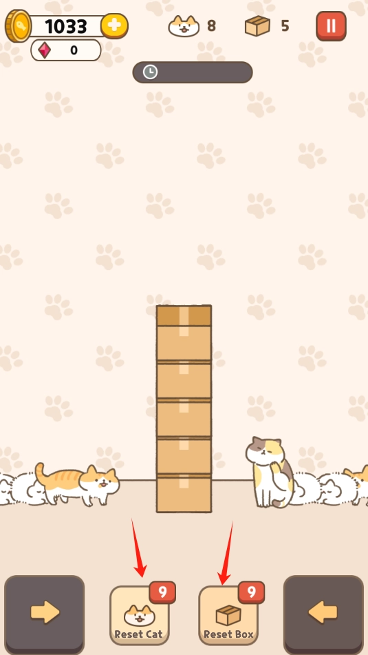 3、不同的箱子,装不同的猫咪,没有合适的箱子或猫咪时,可点击下方的道具,进行消除。