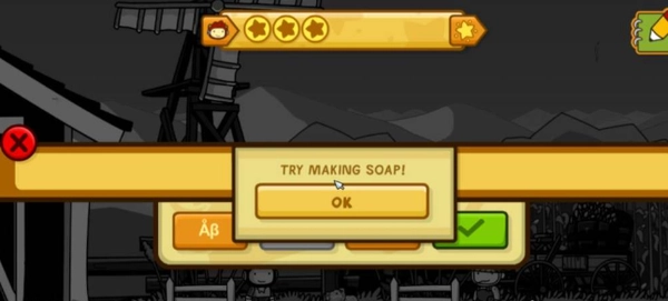 3.如果你输入的单词不对,游戏开始之初会在你确认输入给予相应的提示。如第一个你需要输入SOAP,创造出来肥皂来给小猪清理。