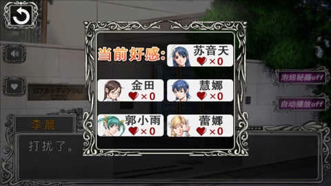 在每日的末尾,若五位女性角色的好感度累加值满足特定条件,即可解锁次日的剧情;当游戏进程推进至最后一日,你能够向心中所属的那位女性角色表达心意,不过倘若好感度未达标准,此次告白或许会以失败告终。