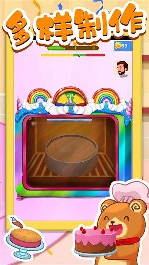 多样的食材各有独特风味,通过解锁更多食谱来掌握最新的蛋糕制作技巧,从而打造出各种口味迥异的蛋糕。2.不同种类的果酱与奶油能够相互融合搭配,把洗净的水果榨汁后混入奶油里,就能制作出风味全新的奶油。