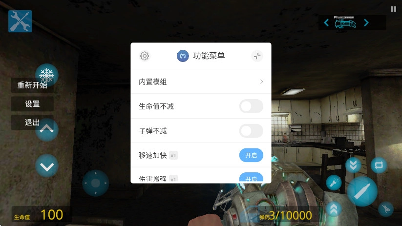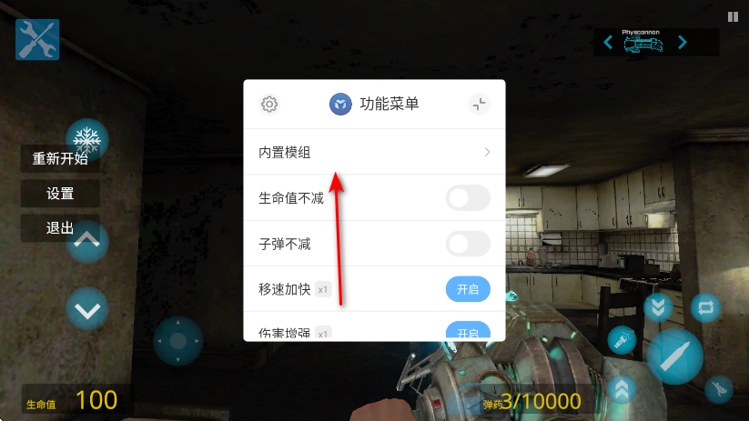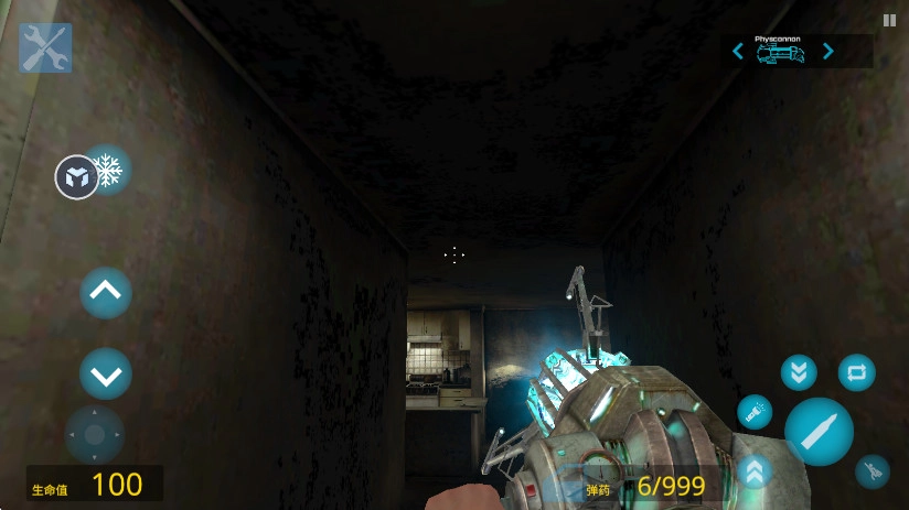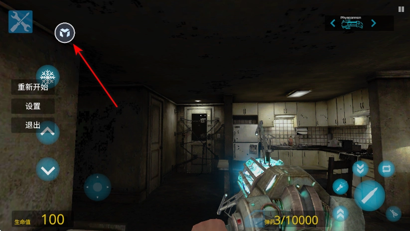 初始配备的武器具备移动物体的功能,当确定好待移动的对象后,先长按开火按键完成锁定,之后保持长按状态并滑动该开火按钮即可实现操作。