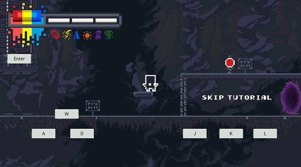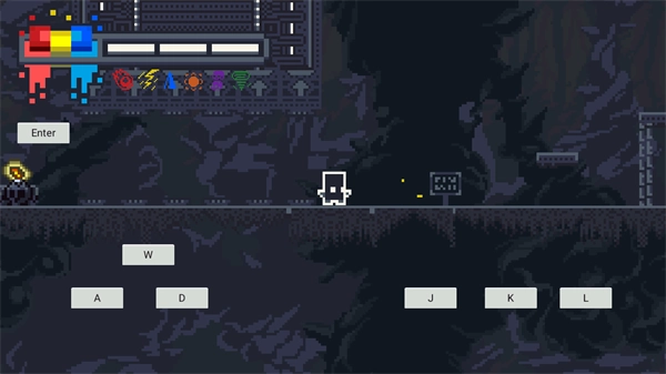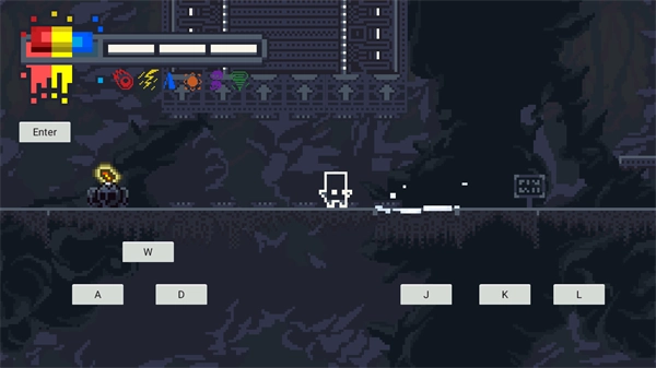 3、游戏力玩家们还可以进行二段跳,玩家们来到敌人面前按“J”键以使用红色,来杀死敌人或与目标交互,游戏的左上角是当当前玩家们的技能cd;