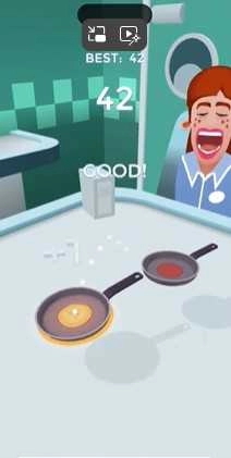 2、在翻转过程中需避免煎饼掉落,避免重新挑战。