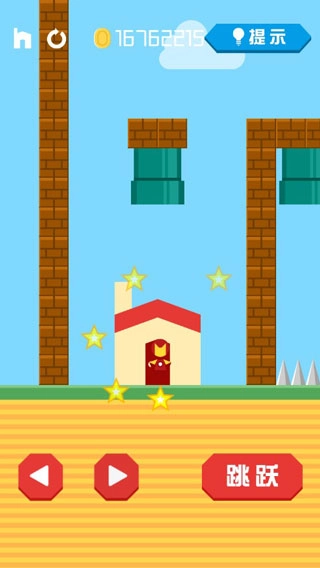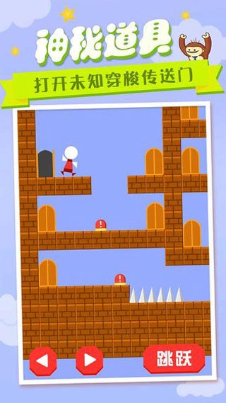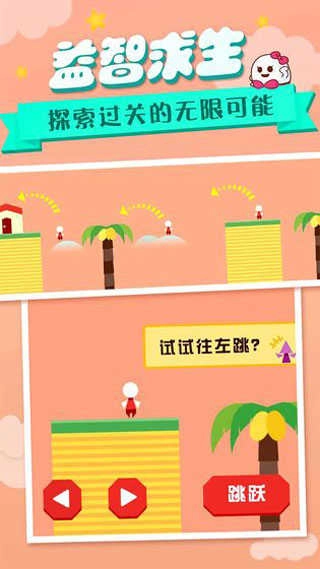 右侧控制角色跳跃,游戏过程中界面偶尔会给出提示,同时设有不少障碍与陷阱,建议谨慎闯关,避免盲目操作。