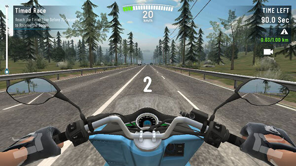 2、通过左右摆动手机来操控摩托车的左右行驶方向,以此避开道路上的各类车辆。