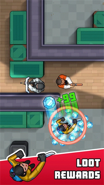 上帝视角,点击屏幕选择刺客移动路径,利用掩体等躲避灯光,击杀获取钻石解锁新刺客,基本就是这款游戏的主体。