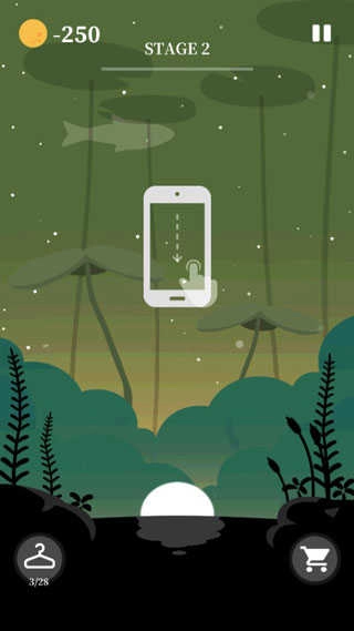 整体而言,这款游戏的难度不算高,不过对玩家的手速与反应力要求挺高的。玩家需要保护小青蛙在水中持续跳跃,方向的把控十分关键,过程中不能碰到沿途的墙壁和荆棘。同时,利用各种机关、收集路上的金币,这些也都是取胜的重要因素。