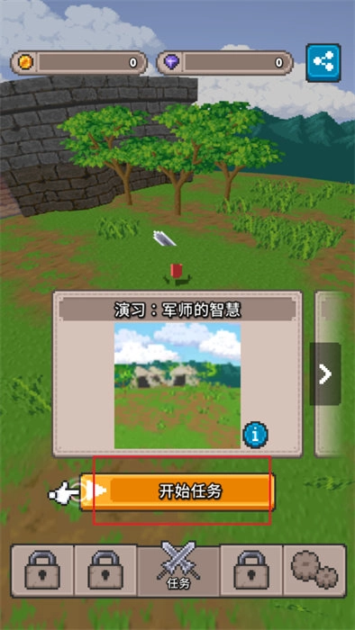 当玩家进入游戏的场景后,需要点击屏幕上的【开始任务】按钮,这样才能启动游戏。