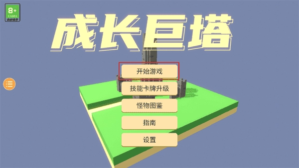 进入游戏界面后,能看到几个主要功能选项,包括开启游戏、提升技能卡牌等级、查看怪物资料、了解游戏指引以及调整游戏设置等,选择其中的“开启游戏”选项即可进入游戏环节。