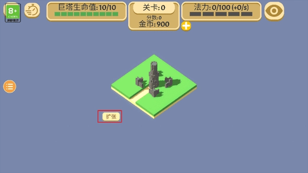 3、游戏的开始就是一个小小的板块,你需要点击“扩张”按键来扩大地图的面积。