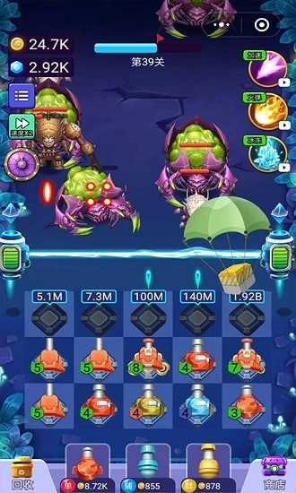 炮塔的选择与摆放位置需仔细斟酌比较。成功击败外星人后,你将获得金币,这些金币可用于升级成对的炮塔。