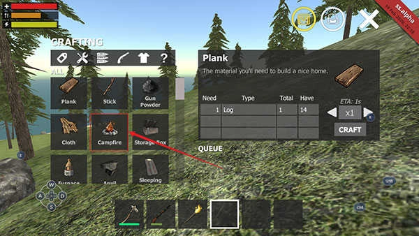 5、那么请拿起你的小斧头去石头上砍几下获取足够的石头,不过由于小编带来的是,所以玩家们只需要进游戏商店内购买Stone(石头)即可,不过也可以直接购买Campfire。