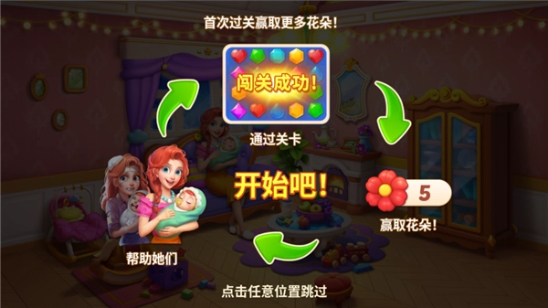 完成每个房间的设计,就能领取甜蜜的免费奖励,像金币、道具这类都有哦!