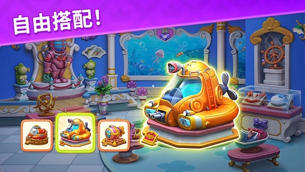 完成消除游戏后,就能用消除过程中获得的皇冠来装饰房间了。
