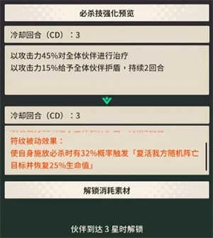 符纹系统:角色达到三星后开启,激活后可为必杀技附加特殊增益效果。