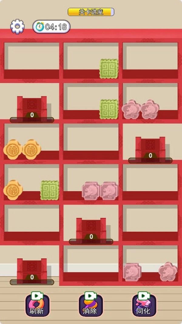 玩月饼消除游戏乐趣可不少,看着货架上摆得满满当当、各式各样的月饼,你可得认真仔细地观察才行。